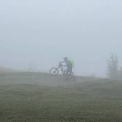 Abfahrt in reichlich Nebel aber immerhin trocken…