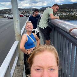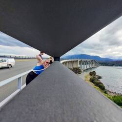 Vormittags war ich bloß im Park und habe gelesen. So kurz vor 3 hab ich mich mit 3 Freunden (meggie, Manu und James 🇬🇧) auf dem Weg zur Tasman Bridge gemacht weil wir die überqueren wollten.Read more