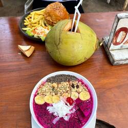 Morgens ging’s erstmal mit dem Auto zur Fähre die uns nach gili t geführt hat. Ich sag’s euch schlimmste Fährenfahrt der Welt!! Es hat so gewackelt ich konnte meine Augen gar nicht aufmachen!Leggi altro