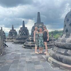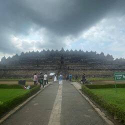 The largest Buddhist temple complex in the world - the Borobudur Temple - was very impressive: a 2500 square metre big complex stretches majestically in a rather rural area around 25 kilometres outside of Yogyakarta. Just like the Hinduistic Prambanan Temple, it is a UNSECO World Heritage Site, but can only be visited together with a guide. Our guide also told us a lot about this ancient religious site. The complex was built from volcanic rock from the Merapi volcano without any cement, but was renovated in some places with stone that was brought there later. The temple has a total of 9 floors, with the first 7 floors representing the earthly world and the last 2 floors the supernatural worlds. Up to the 7th floor, there are many reliefs depicting stories of Buddhas and Bodhisattvas, as well as Buddha's disciples. You can also discover many Buddha statues with different mudras. The temple originally housed a total of 504 Buddhas, some of which have been destroyed over time due to weathering or vandalism. Buddha statues in stupas are also scattered around the central dome on the 9th floor in the centre of the temple, which is supposed to represent Nirvana. These Buddhas on the 8th and 9th floors all show the dharmachakra mudra, a smybol of the Buddha's teachings (dharmachakra) or infinity on a metaphysical level.Read more