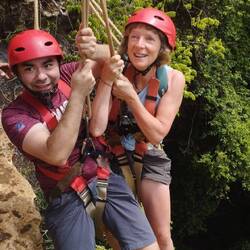 Heute Vormittag waren wir in der Jomblang-Cave, einer riesigen Höhle, welche sich tief in den Felsen hineinstreckt. Wir wurden 40 m mit einem Seil in die Tiefe abgelassen undLäs mer
