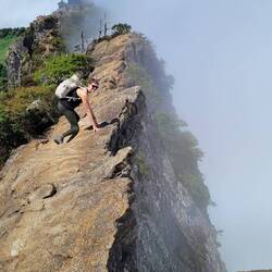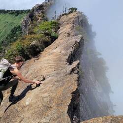 Today, we hiked to the highest mountain of western Japan and Shikoku, Mount Ishizuchi (1982 m). Since we were taken to an altitude of 1300 m within 8 minutes by gondola, we had to "only" hike further 850 hight meters to the summit. The ascent led over many wooden stairs because the ground was too wet for a hiking trail. At the summit, we stopped for lunch next to a temple and a mountain hut where apparently you could also spend the night. Afterwards, we mastered a risky climbing pathway on the ridge of the mountain to the summit cross of Ishizuchi. This climb probably would not have passed European safety standards but the risk was worth it! The descent took much less time than the ascent even though our legs were shaking a bit in the gondola...