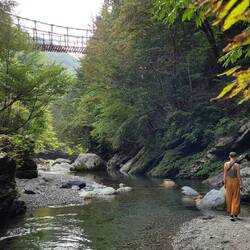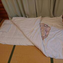 At the end, we went to the 45-meter-long ancient Kazurabashi Bridge, which crosses the Iya River and is built mainly with mountain vines. It is unclear when exactly the bridge was built, but it is the longest of the three surviving suspension bridges of the original 13 in Japan. After this eventful day, we are happy to arrive at our typical Japanese-style bungalow: We sleep on Futton beds on tatami mats which are folded during the day. Like that, the flat table in the middle of the room, where we eat kneeling, has more space. A very cozy atmosphere!Read more