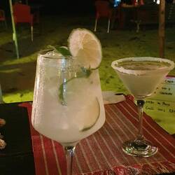 Abends direkt am Strand gegessen und Cocktails getrunken. So lässt es sich aushalten.