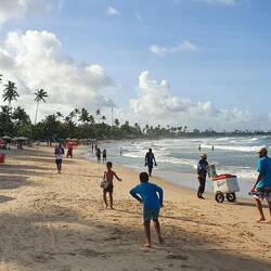 Das Flair hier ist sehr ur-brasilianisch, mit sehr natürlichen Stränden, ohne Hochhäuser, sogar kleine Sagui-Affen (Weißbüschelaffen) springen hier am Strand in den Bäumen und in den Telefonkabeln rum.