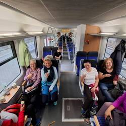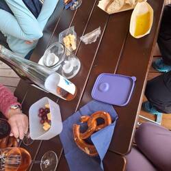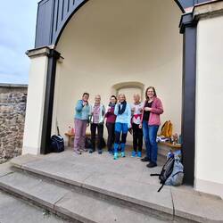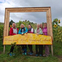 Wir sind mit dem Zug nach Radebeul gefahren, 400 Stufen hinauf gestiegen und eine schöne 10 kmRunde geführt von Anelies gelaufen. Zum Schluss sind wir eingekehrt im Wingut Aust und haben alle Sorten verkostet und dazu Aronialikör von Christine.