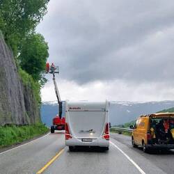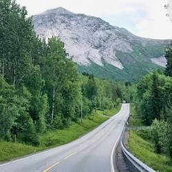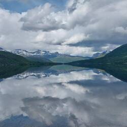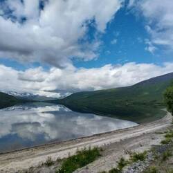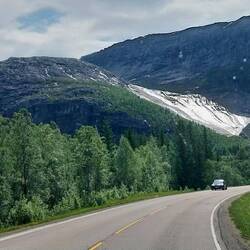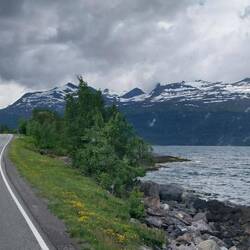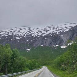 Auf der Strecke von ulvsvag bis rognan haben wir heute 24 Tunnel passiert. Das Wetter änderte sich dabei ständig. In strömenden Regen auf einer Seite rein, bei Sonnenschein wieder raus, mal mit Schnee fast bis zu strasse, dann wieder ein blüten Meer. Schroffe Felsen, glasklaren Wasser, so vielseitig kann die E6 sein.