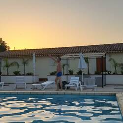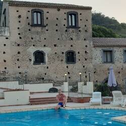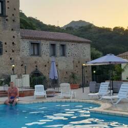 Hoffentlich bricht er heute Abend nicht aus. Unsere Unterkunft ist spitze, Top Preis und mit Pool.