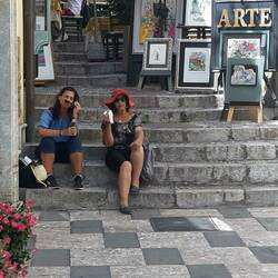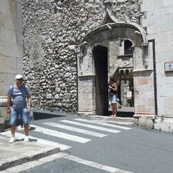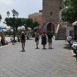 Taormina ist eine wunderschöne Bergstadt. Direckt an den Felsen zum Meer. Fahren jetzt nach Messina und mit der Fähre zum Festland.