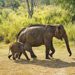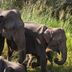 Der Park ist nicht eingezäunt und somit können sich die Elefanten frei bewegen, so kann es auch schon mal vorkommen, dass die Elefanten die Straße überqueren.