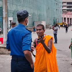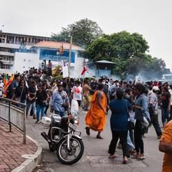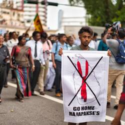 Am 09. Juni waren wir selbst mitten in einem Protest in Colombo. Dieser fand statt, um den Verstorbenen zu gedenken. Es macht den Eindruck als sei es ein angemeldeter Protestmarsch. Die Route scheint bekannt zu sein, die Polizei ist präsent und sperrt die Straßen ab. Das Militär und die Navy ist ebenfalls anwesend. Allesamt fokussiert auf ihre Aufgabe, aber nicht gewillt eine Auseinandersetzung zu provozieren. Demonstranten schreien die Polizisten an, äußern Unverständnis, dass die Polizei weiterhin für den Präsidenten arbeitet. Sie sagen, sie seien doch in der selben Situation und fragen warum sie nicht ihren Dienst verweigern. Die Polizisten verhalten sich weiter sehr passiv, auch als sie persönlich angesprochen werden.