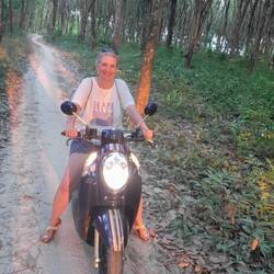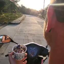 Marjolein. Heute kommt etwas mehr Bewegung in unsere kleine Truppe rein. Denn heute steht der erste Rollerausflug auf dem Plan! Ich bei Rainer hinten drauf und Mama fährt den anderen Roller - wie einBaca lagi