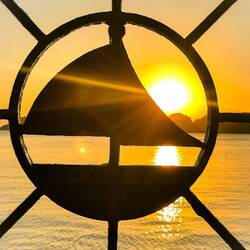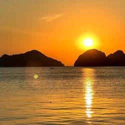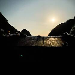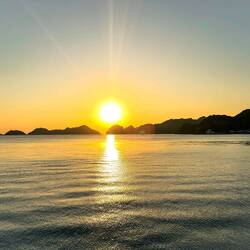 In Cat Ba angekommen besuchen wir drei gemeinsam mit Lám noch den Sonnenuntergang am Cannon Fort und genießen das bunte Farbenspiel über der Bucht.