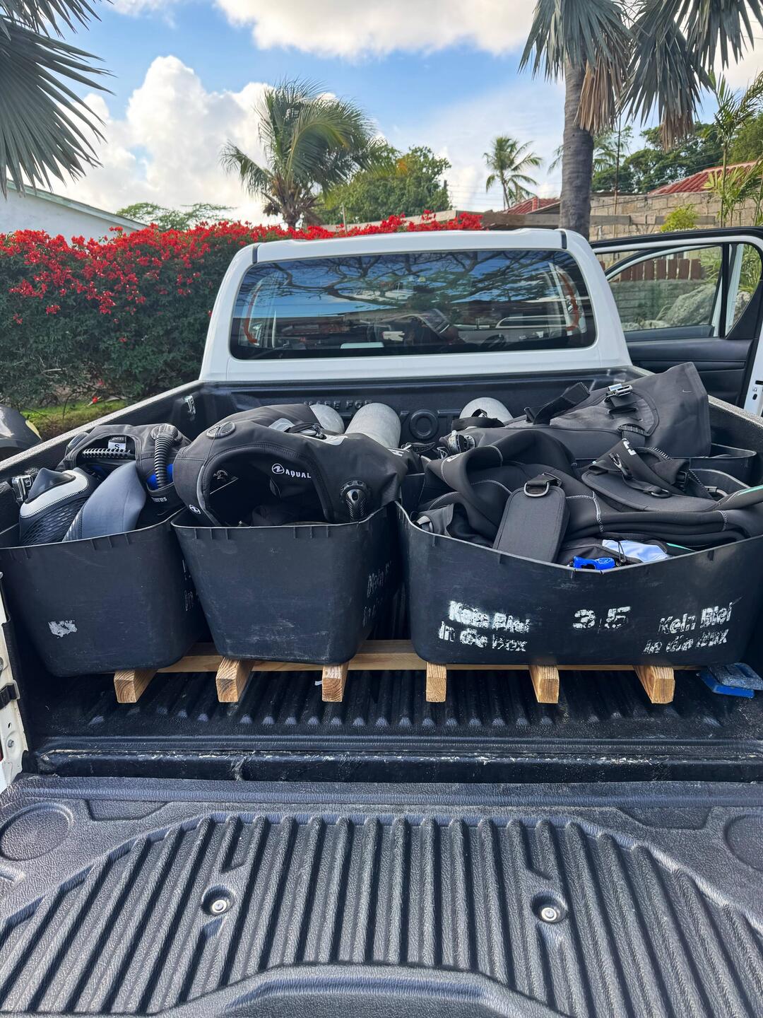 Das Auto ist gepackt und es geht los zum ersten Tauchspot heute an der Playa Lagun.