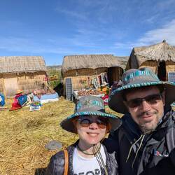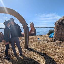 Just the last picture before we leave the fascinating floating island. While we waited for our transfer to Taquile island, we had time for a touristic shot with the Uros island sign.
