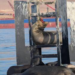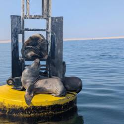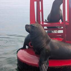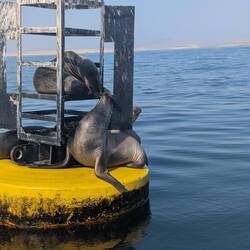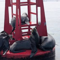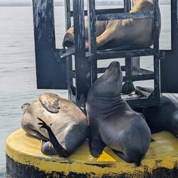 • Sea lions relaxing on a buoy