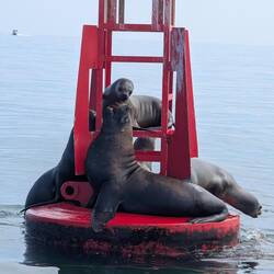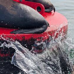 • Sea lions playing on a buoy