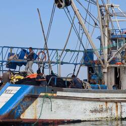 Finally, entering the harbor. we went through the fishing boat area where we could withstand the fishing teams preparing for squid fishing.Read more