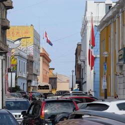 Overlooking the square, you will find the cathedral of Lima. The main structure of this large church is completely made of wood and bambu making it flexible and more resistant to the frequent earthquakes. In the inside one can find the chapel celebrating Pizarro the now hosts also his remains. The decorations and pieces of art inside are a fascinating example of how local elements got incorporated in traditional catholic symbols. Images such as the mountain-bike holy Mary are a great example of that.Read more