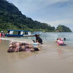 pantainya bagus banget, sepi, pasir nya putih dan airnya jernih bgt. dilanjutkan ke atas pantai aia manih