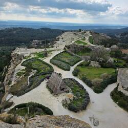 Auf dem Nachbarhügel finden wir noch eine kleine Kirche die am Ende des Kreuzweges steht. Und aus irgendeinem Grund "erschien" den 80er Jahren des vergangenen Jahrhunderts neben der Kirche "Espiral". Eine aus Steinen gelegte Spirale, die.... Naja eben eine Spirale ist. So richtig weiß niemand wer dafür verantwortlich ist, aber jetzt ist sie da und wir laufen natürlich im Kreis...