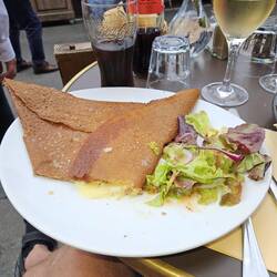 Kei ahnig, sicher nid Crèpes. Das isch en Galette. Mini version mit Camembert.