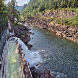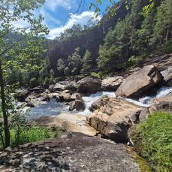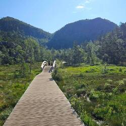 4km langi Flösserrinne, Vennesla isch die einzig in Norwegen. Frühner hed mer das brucht för Baumstämm ist Tal z'flösse. Jetzt isches en sehr gmütlechi Wanderig i dere Rinne.