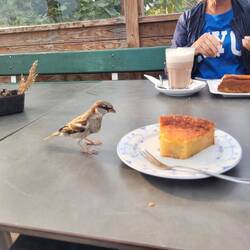 - Der Spatz will auch was vom Kuchen haben ....bei Anja hat er es geschafft....als Sie zu lange auf's Handy geschaut hat 🥳🤣