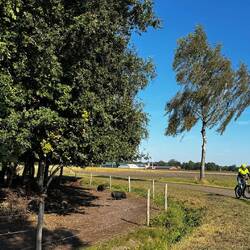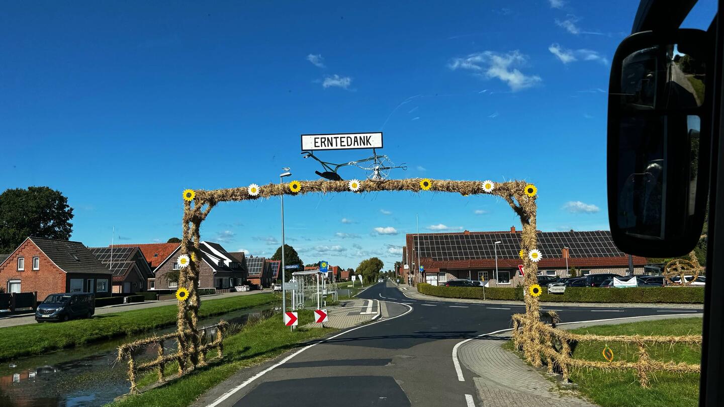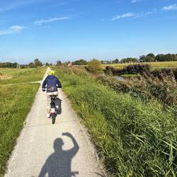Samstagmorgen steht eine Radtour zur Kürbis-Farm auf dem Programm. Toll organisiert - und alle mit gelben Westen ausgestattet - fahren wir gemeinsam durch das ehemalige Torfgebiet.