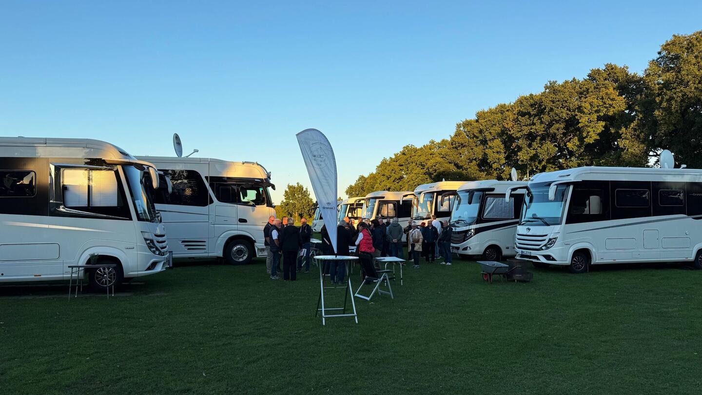 Wir waren eine der letzten von 25 WoMos, die am Treffpunkt ankamen. Ein super schöner Empfang und ein Wiedersehen mit vielen tollen Menschen 🫶.