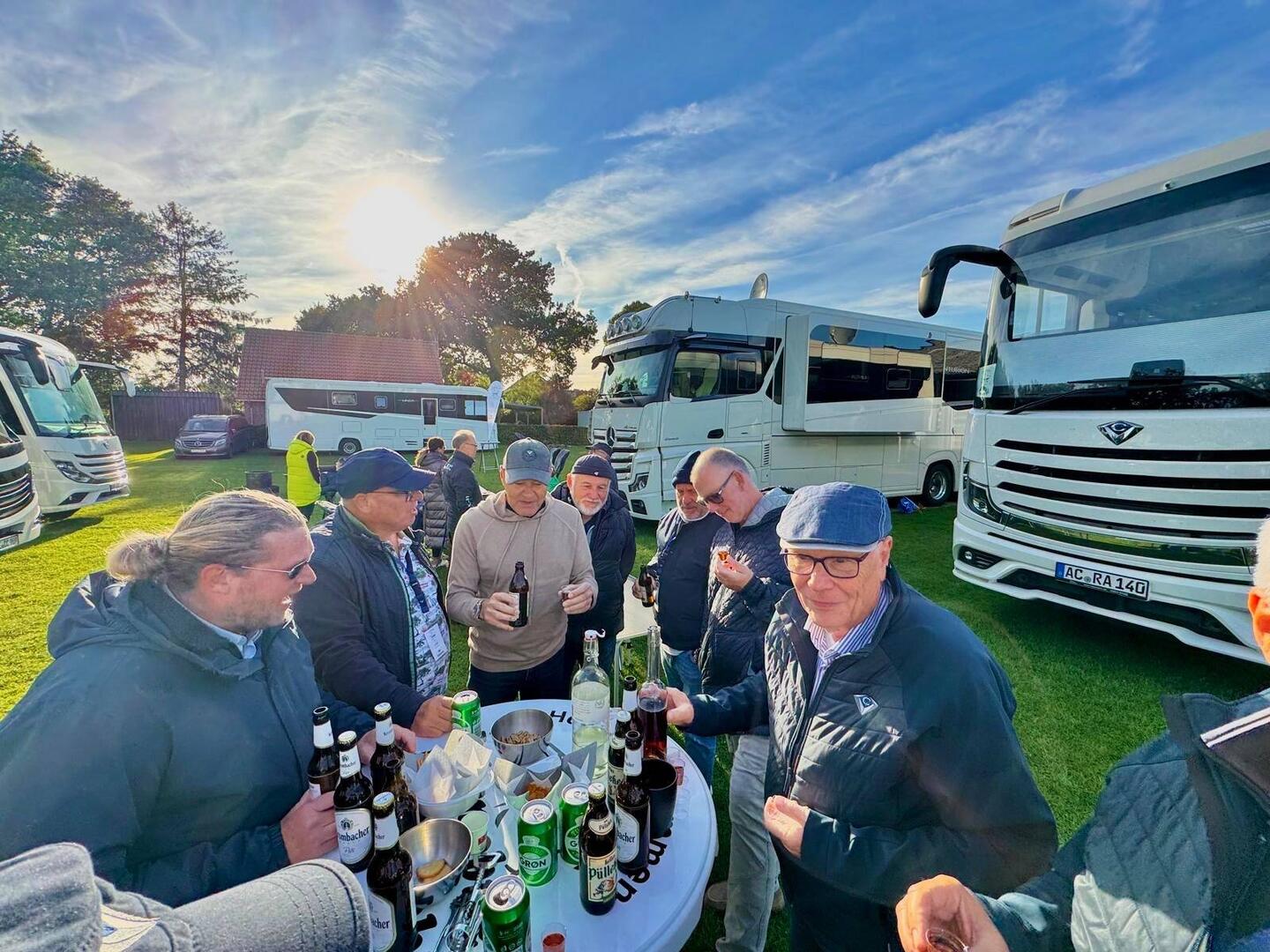 Vor dem Essen ein „stand-in“ vor den WoMos, bevor es zum Essen ging.