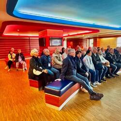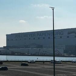 Bus abgeholt und zu einer Premium-Besichtigung der Mayerwerft gebracht. Unsere Reiseführerin war - wie ihre Namensvetterin Hella von Sinnen - nicht nur ein ebensolchesもっと詳しく
