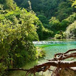 - Syri i Kaltër, e Sehenswürdigkeit imene Nationalpark, wo Wasser vom Berg vo une ufe qillt…