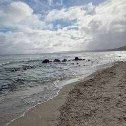 Am Strand zu spazieren ,den ,nicht mal sehr kalten ,Wind zu genießen, einfach herrlich 😍 . Dem Spiel der Wellen zuzusehen und das Rauschen dazu : Wumbaba.