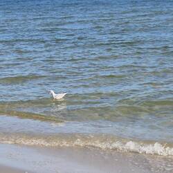 Der Tag beginnt recht feucht und nebelig ,die See ist kaum zu sehen , von der Sonne ganz zu schweigen und grauer kann ein Himmel gar nicht sein . Aber es ist wirklich " nur" nebelfeucht,es regnet nicht. Wir machen also einen kurzen Spaziergang nach Baabe ,wieder an der Wasserkante entlang ,die sich noch weiter zurück gezogen hat ,als gestern und von weitem ist die Ostsee glatt wie ein Spiegel. Die Wasservögel sind wie jeden Tag unterwegs,auch ,man staune ,viele Spaziergänger. Kurz vor Baabe erleben wir doch tatsächlich eine junge Mama mit Sohn und Tochter im 14° Wasser 😲 . Mutig !!!! Baabe ist schnell erkundet ,außer Andenken- und Sportläden gibt's noch einen Fahrradladen ,eine Bar und ungefähr drölfzig Hotels ,Pensionen und dergleichen. Achso ....ein Mutter- Kind-- Heim hat's auch hier in Baabe . An der Strandpromenade die obligatorischen Fressbuden ,Imbisse aller Couleur und ein Dutzend Cafés. Schnell wieder zum Strand ,die ruhige See beruhigt und wir laufen zurück, noch einen Tick Richtung Sellin . Zwischendurch fängt ein Pärchen an Möven zu füttern mit Fischbröckchen, ohohhh, das wird ganz schnell zum Gewusel und gefühlt alles ,was fliegen kann ,ist ganz schnell zur Stelle.