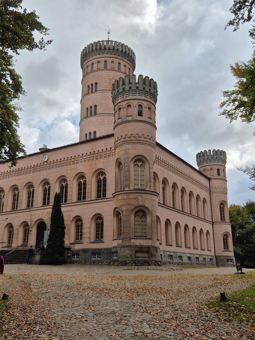 Tja ,heute ist nicht wirklich Wetter ,weder Fisch noch Fleisch. Am Morgen kommt ja noch ab und zu die Sonne gucken ,aber ab Elfe zieht es sich richtig zu. Da sind wir aber schon unterwegs : das Jagdschloss Granitz ist unser Ziel. Mit dem " Rasenden Roland" fahren wir von Baabe bis Jagdschloss, wir ruckeln uns vorwärts und steigen mit gefühlt dem halben Zug aus . Der Weg zum Schloss ist mit Steinen gepflastert , im wahrsten Sinne des Wortes . Naja ,ich überlebe es ,habe nämlich heute die falschen Schuhe an 🥴 .