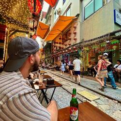 Van dit voornemen kwam echter weinig terecht. In de ochtend ging Veerle voor een manicure en pedicure en ikzelf ging naar een plaatselijke sportschool. Hierna bezochten we de Train Street. Een smalle straat waar restaurantjes direct aan het spoor zitten. Een paar minuten voordat de trein komt gaat een bel af. Dit is het teken om de tafeltjes op te schuiven en de mensen te waarschuwen om van het spoor af te gaan. Hoe dit niet regelmatig leidt tot ongelukken is ons een raadsel.