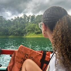 We mochten zwemmen in het meer en vervolgens was er tijd voor een jungle hike. Terwijl we vertrokken begon het keihard te regenen, zo hard dat je niks meer kon zien. Dit was wel spannend omdat de bootjes niet super stevig waren en de dag ervoor nog een man vermist was geraakt nadat een boot was gekapseisd. We kwamen aan in de jungle en in de stromende regen beklommen we een waterval (geen foto’s want we waren te druk met het focussen om niet te vallen). Voor de hike had ik nog waterschoenen gehuurd. Deze waren alleen veels te groot waardoor bij elke stap ik zoveel water meenam in mijn schoen dat het wonder was dat er geen vis in zat.