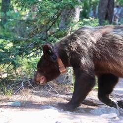 RejsendeDa in diesem Park sowohl sehr viele Menschen als auch Bären unterwegs sind, gehen die Ranger an einigen Stellen Patrouillie. Über die Farben am Ohr können sie die Tiere identifizieren und über die Halsbänder die Wanderbewegungen verfolgen. Große Einzelgänger und Leittiere der Herden werden so versucht zu beobachten.