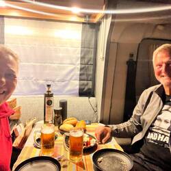Am Weg Richtung albanischer Küste durch das naturbelassene Vjosatal gefahren und einen tollen Platz beim Strandlokal Buona Villa gefunden, traumhaften Sonnenuntergang und traumhaft gespeist, auch dieLeggi altro