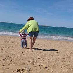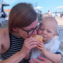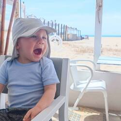 Joris hat am Strand einen neuen Freund gefunden. Dem war die Sprachbarriere auch ganz egal, er hat einfach jedes "Decko", "Ei" und "Hi" von Joris nachgeplappert.