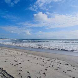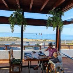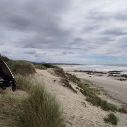 Nachdem heute Morgen Joris' Stühlchen tiefgefroren war, gab's für ihn mal Frühstück im Bett. Für die heutige Nacht haben wir einen ganzen Campingplatz für uns allein. Ob wir vom Meer träumen werden?