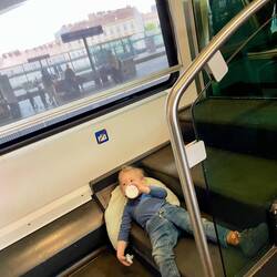 Mit Kinderwagen, Koffer, Rucksäcken und einem putzmunteren Kind machten wir uns um 4:15 zu Fuß auf zum Bahnhof. 🚉 Der Zug fuhr pünktlich ab und wir suchten nach Sitzplätzen. Der Zug war Czytaj więcej
