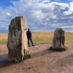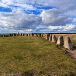 Wir starteten heute bei Regen unsere Fahrt und hatten vor, nur bis nach Ystad zu fahren. Aber uns kam ein Dollar-Shop, ein anderes Städtchen und ein Wikinger-Stein-Dingsbums dazwischen. Der DollarLæs mere