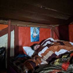 On mange donc tous les 7 notre soupe, notre riz / notre œuf (ou viande) / nos bananes plantain en se racontant notre journée et nos projets pour les suivantes avant de retourner vite au chaud sous nos couvertures (et sous la protection du petit Jésus, merci la déco colombienne). Les garçons eux dorment dehors dans leur tente alors que le sol commence déjà à geler.