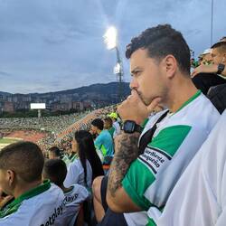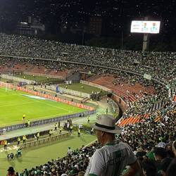 Cet après-midi on va voir un match de foot Medellín vs Bogotá au stade de la ville. C'est une institution ici du coup pour se fondre dans la masse on achète le maillot blanc et vert de l'équipe. On nous avait dit de bien faire attention à ne pas être dans la tribune des rouges (l'équipe de Bogotá), pas de risque le stade est paré aux couleurs de Medellín.