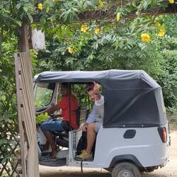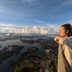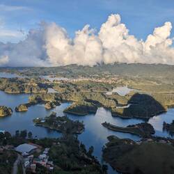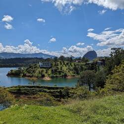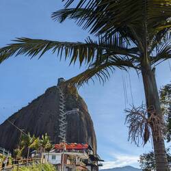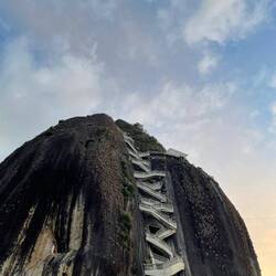 L'autre attraction c'est ce monolithe géant, appelé Piedra del Peñol. Pour y aller on prend un tuk-tuk (première fois pour Télio et moi !). Ensuite il faut monter quelque 700 marches pour arriver en haut et avoir une vue incroyable sur les environs. C'est là qu'Alex nous abandonne, il décide de rester en bas et avec Télio on commence l'ascension. Finalement plus de peur que de mal en 15/20min on est en haut, juste à temps pour le soleil de fin de journée.