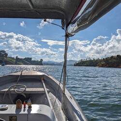 Ce qui fait l'attrait de cette région aussi c'est l'immense lac et toutes ses îles. Depuis Guatape on peut faire un tour en bateau d'une heure pour voir différentes îles et d'immenses maisons (notamment celle de Pablo Escobar qui est aujourd'hui une ruine). Télio arrive à négocier le prix du tour, il passe de 150000$ à 50000$, belle réduc ! (Merci Telio sans lui on serait déjà fauché avec Alex)