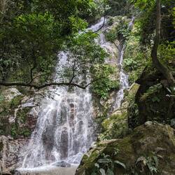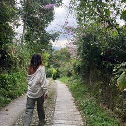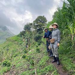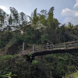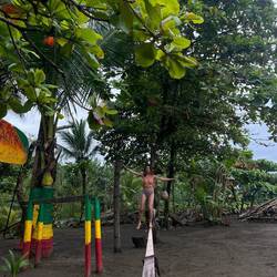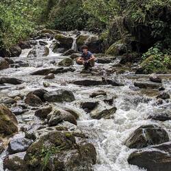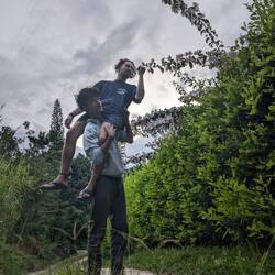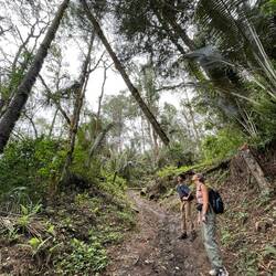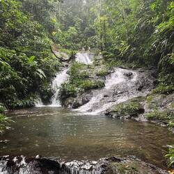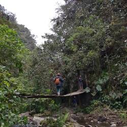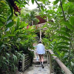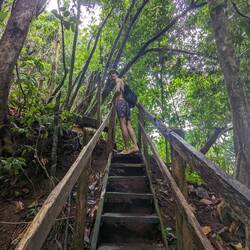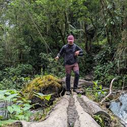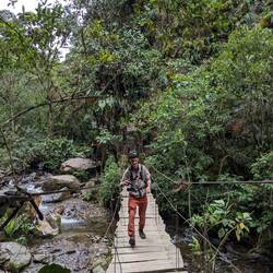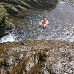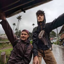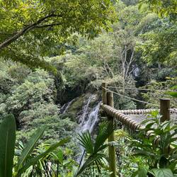 La randonnée qui était censée durer 3/4h durera finalement 5/6h. En même temps, après à peine 45 min de marche on s'arrête 1h à la cascada la escalera; on enfile directement les maillots et on se rafraîchit dans l'eau fraîche. Une fois rechaussés, on tente de continuer la rando mais on ne peut s'empêcher de s'arrêter tous les 50m pour admirer une plante incroyable, un fruit inconnu, une maison digne de Robinson Crusoe, un arbre croulant sous le lichens, des parapentes tentant de prendre un thermique, un chien paré d'une couronne de feuille, une colonie de fourmies en train de déménager (on suppose on leur a pas demandé), des arbres à escalader, des ponts à traverser... En plus de ça le temps joue contre nous et les orages nous obligent à nous abriter dans un café mirador. Quel dommage !