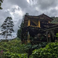 Comme on est arrivé assez tôt, avant 15h, que les nuages sont bien installés et qu'il fait très froid on décide de se mettre dans nos lits sous les 4 couvertures et on s'endort rapidement pour une petite sieste qui nous remet d'applomb. On se réveille 2h plus tard pour manger le dîner à 18h30 composé d'un soupe de pomme de terre puis d'une assiette de riz, oeuf (pour moi et viande pour les autres) et banane plantain. C'est consistant mais les quantités sont pas énormes on aurait bien mangé un peu plus. C'est pas grave il nous reste des noix et des gâteaux. Après on tente de faire une partie de carte mais sans grande conviction on est congelé et fatigué. Dehors il doit faire moins de 10° et dans la finca pas beaucoup plus. Elle est construite comme si on était sur la côte caraïbe : seulement des planches de bois, pas d'isolation et tout est grand ouvert sur l'extérieur. On va donc vite se remettre à l'abris sous nos 4 couches de plaids et bien habillé pour entamer notre nuit à 20h.Read more